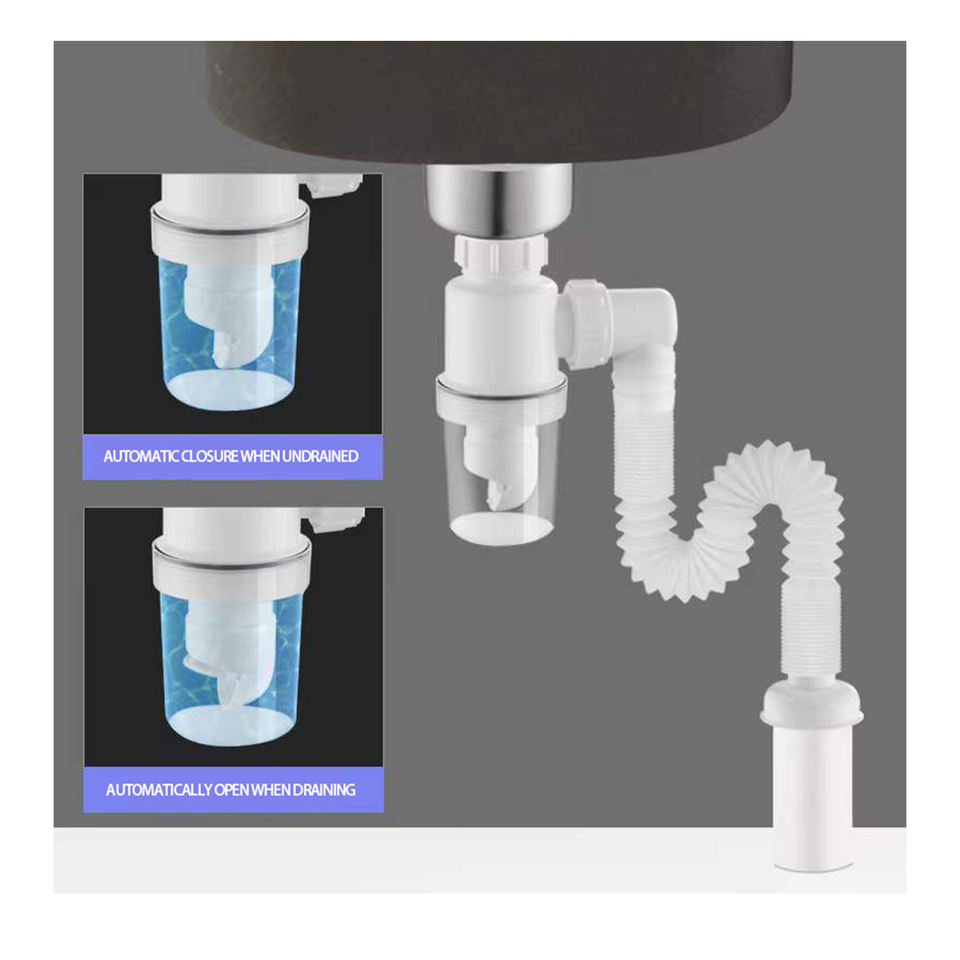 อุปกรณ์ต่อท่อระบายน้ำสำหรับระเบียงถ้วยใสมีช่องระบายน้ำ PVC กันกลิ่น