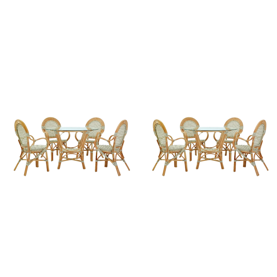 บาหลีชุดรับประทานอาหารบิสโทรชุดรับประทานอาหารหวายแสนสบายหรูหราเก้าอี้และโต๊ะสำหรับรับประทานอาหารทนทาน