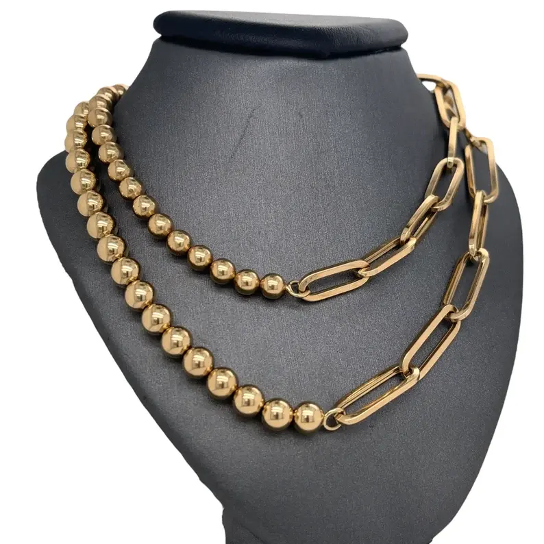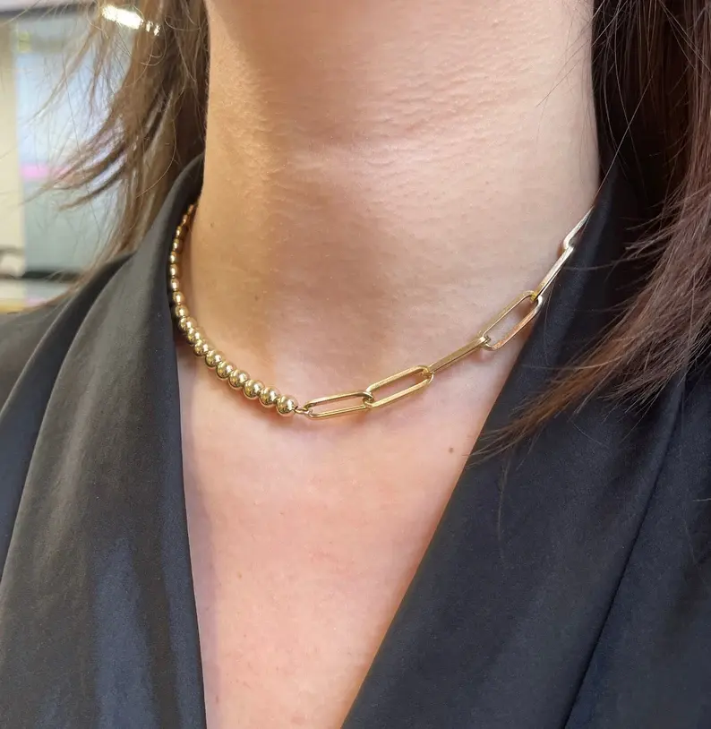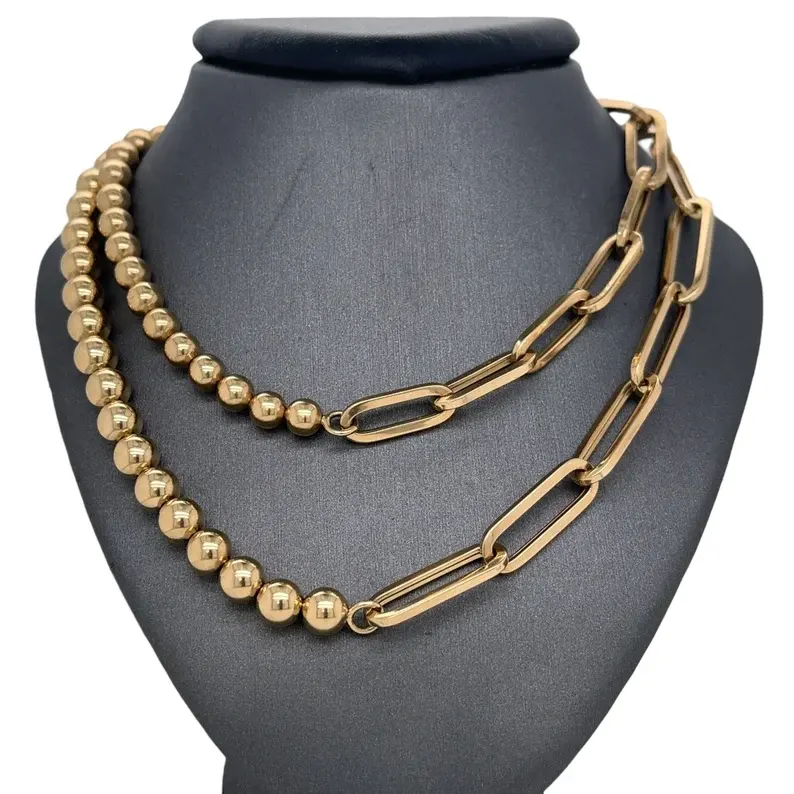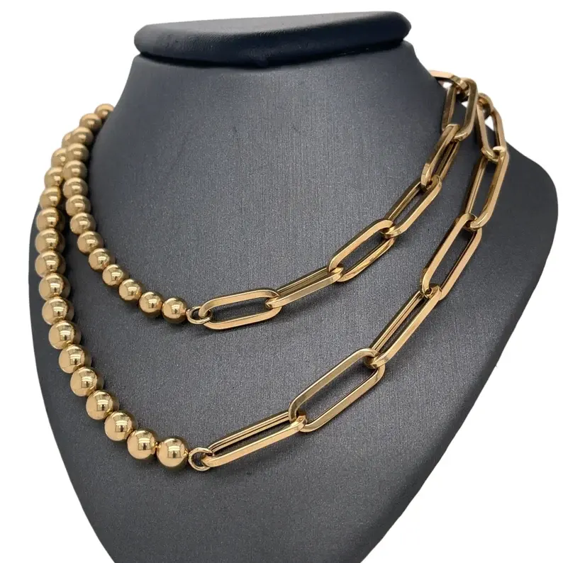 สร้อยคอทองคำแท้ 14k แบบลูกปัด ดีไซน์คลิปหนีบกระดาษ ชุบโรเดียม ขัดเงา สีทองเหลือง คลาสสิก เหมาะสำหรับงานแต่งงาน