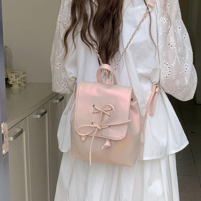กระเป๋าเป้สะพายหลังสไตล์บัลเล่ต์ผู้หญิงสายโซ่สีชมพูน้ำหนักเบาใช้ได้ทุกวันฤดูร้อนปี 2024