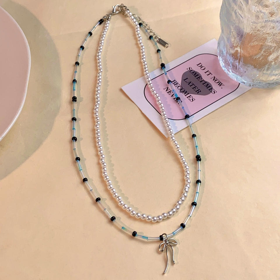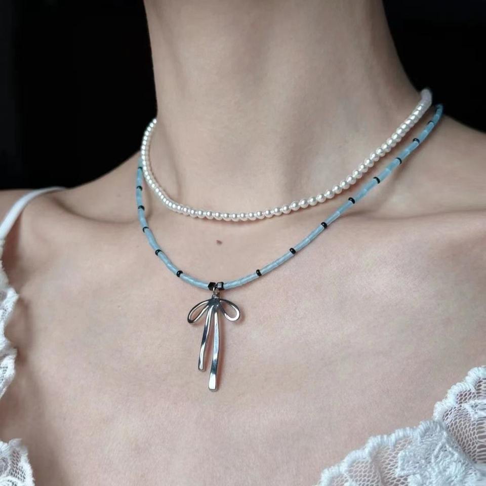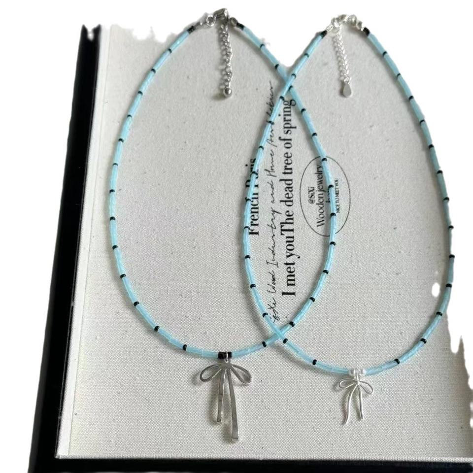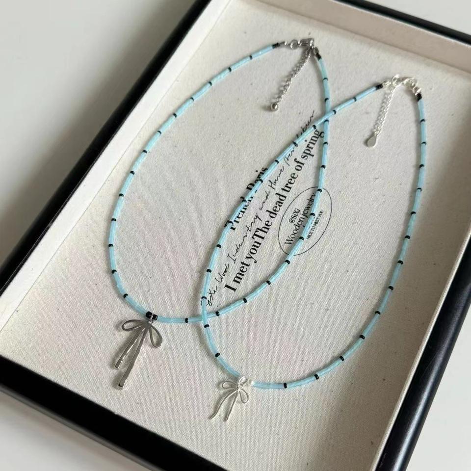 สร้อยคอลูกปัดรูปโบว์สีฟ้าสำหรับสาวบัลเล่ต์สไตล์เฉพาะกลุ่มที่มีเสน่ห์บริสุทธิ์และมีเสน่ห์เน้นความเป็นธรรมประโยชน์หลากหลาย
