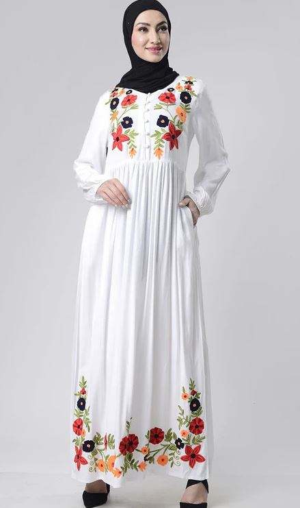 เดรสอาบายาแขนบอลลูนสำหรับผู้หญิงชุดมุสลิมพิมพ์ลายดอกไม้ดิจิตอลใหม่สุดพิเศษสำหรับ2025