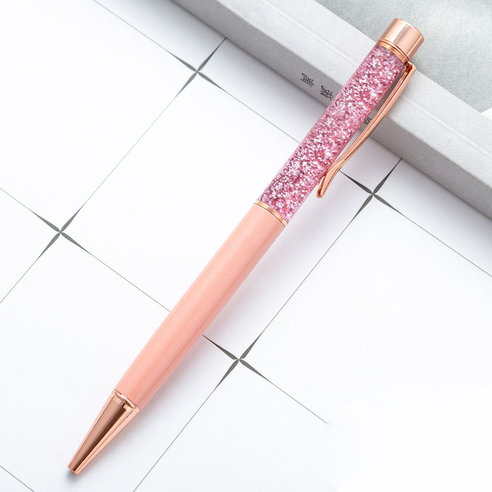 ปากกาลูกลื่นขายส่งสวยงาม ปากกาลูกลื่นกลิตเตอร์ คริสตัลรูปดอกไม้ เพชร ปากกาโลหะเปล่าแฟนซีสำหรับสาวๆ