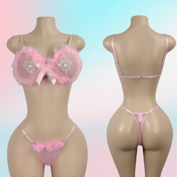 ชุดบอลรูมสีชมพูสวยงาม ผ้าพลัฌเนื้อนุ่ม ซีทรู ชุดสองชิ้น บราไร้โครงเหล็ก ชุดนักเต้นระบำเปลื้องผ้า ชุดเต้นรำแปลกใหม่