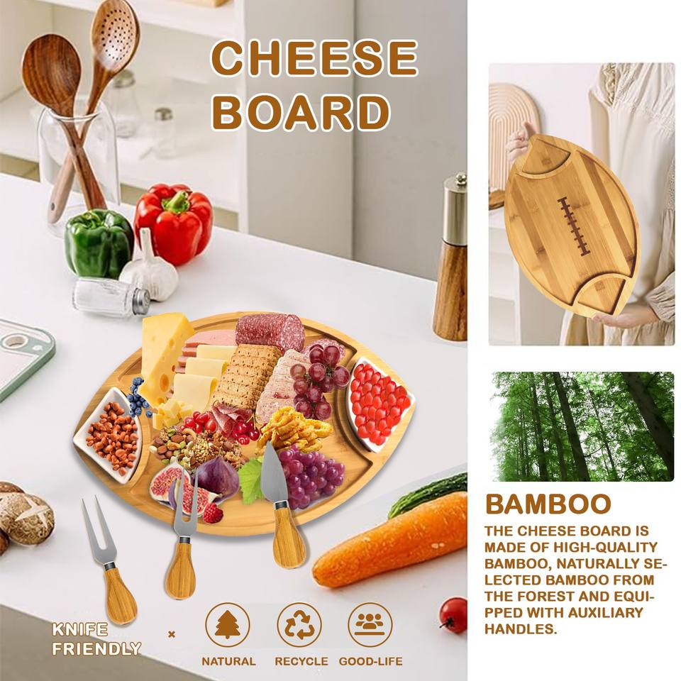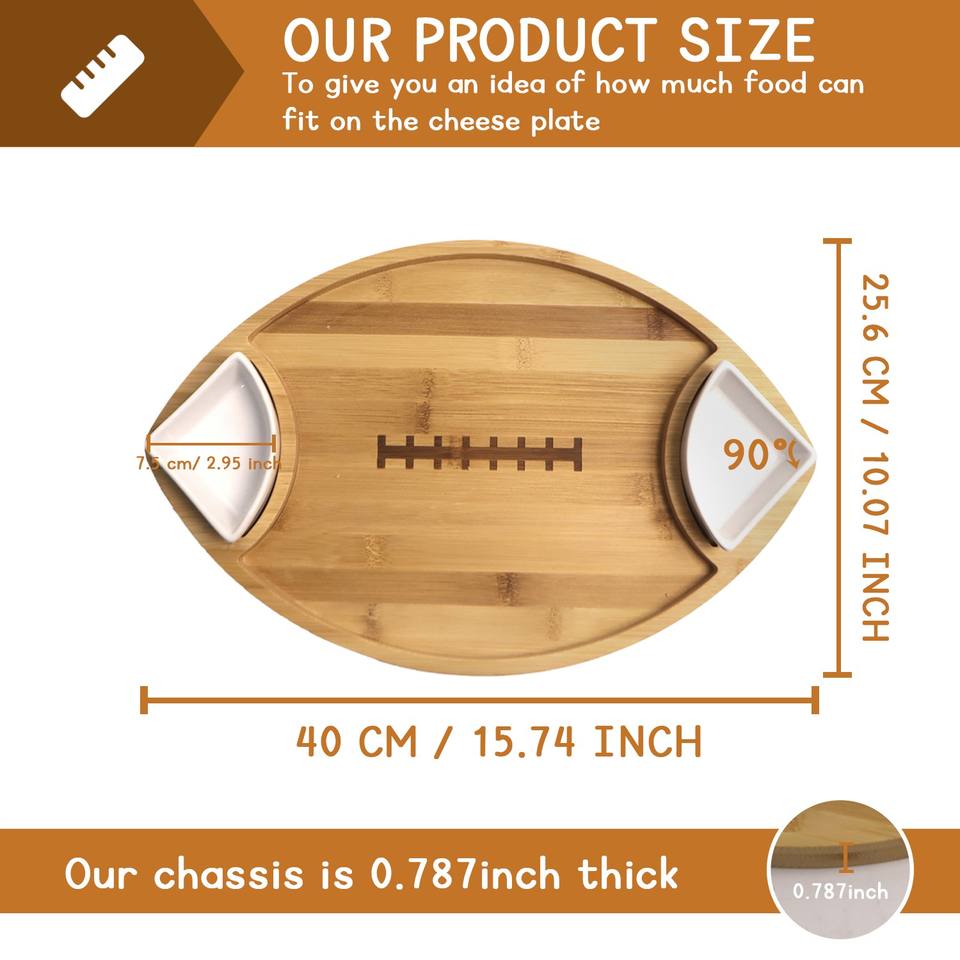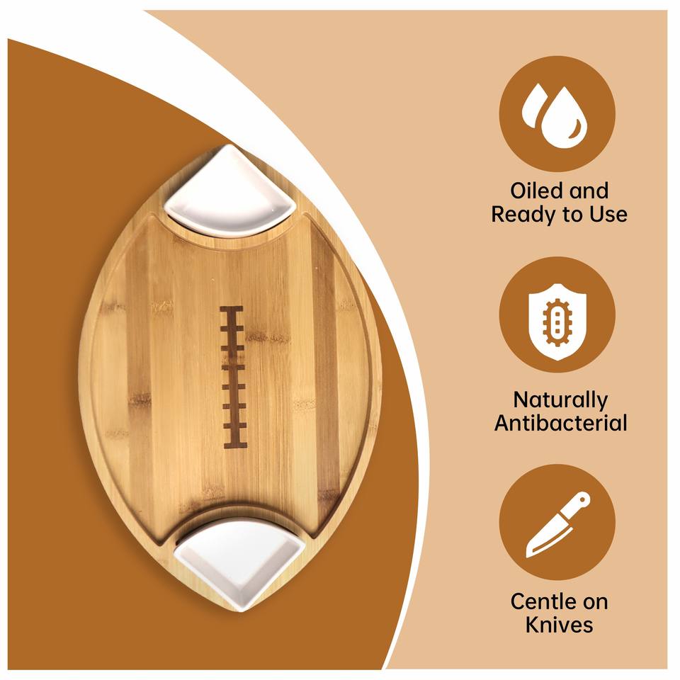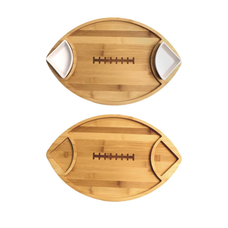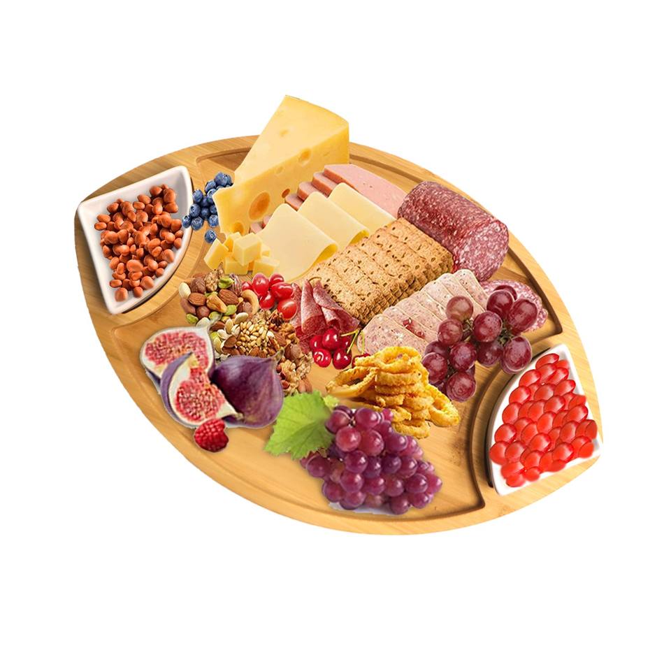 Bamboo Appetizer Serving Tray With Dipping Bowl Wood Plates for Food Ideal for Cheese,Charcuterie,Fruit,Snacks,Chip and Dip