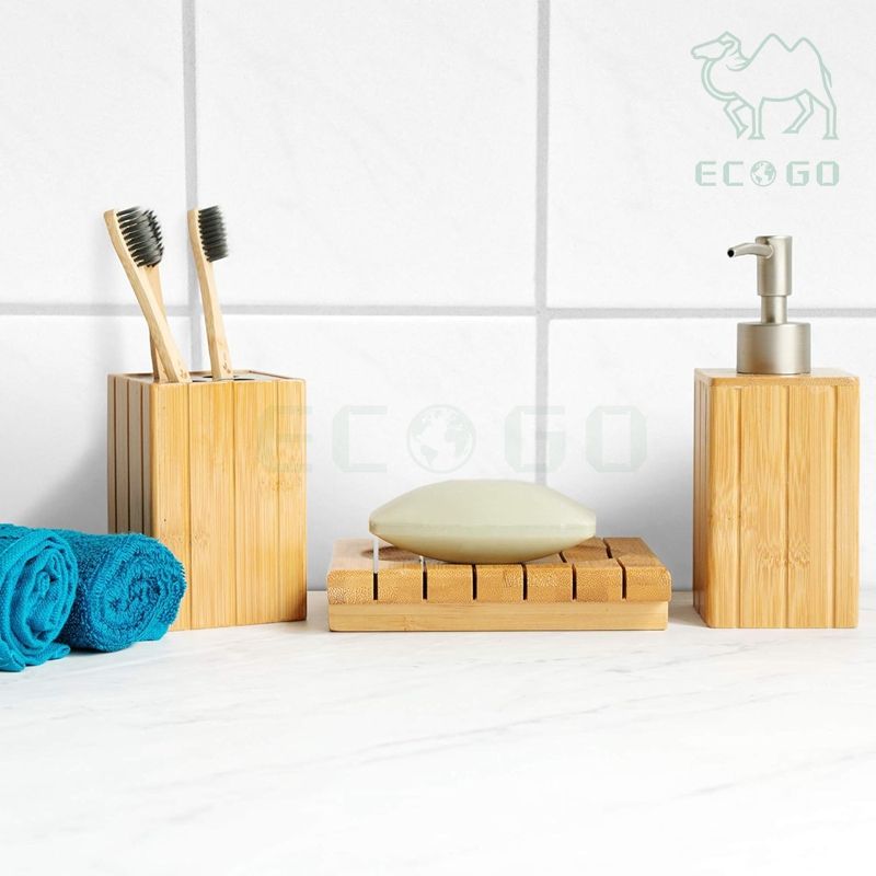ชุดอุปกรณ์ห้องน้ำ 3 ชิ้น วัสดุไม้ไผ่ กันน้ำ ดีไซน์ทันสมัย หรูหรา พร้อมที่วางแปรงสีฟันและที่ใส่ของเหลว