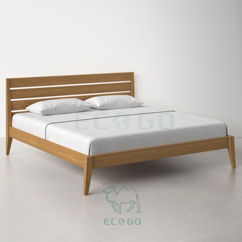 โครงเตียงไม้ไผ่ ฐานเตียงไม้จริง พร้อมหัวเตียง ไม่ต้องใช้สปริง รองรับด้วยแผ่นไม้ระแนง