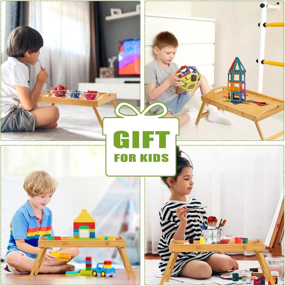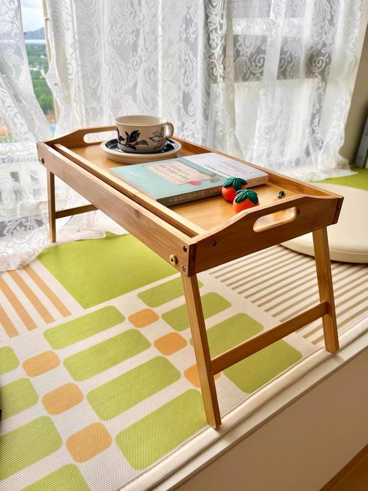ถาดวางบนเตียงไม้ไผ่แบบพับได้พร้อมหูจับ ถาดอาหารเช้าสำหรับโซฟา ถาดเสิร์ฟอาหารบนตัก ถาดวางของว่างบนตัก