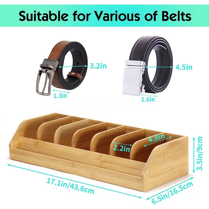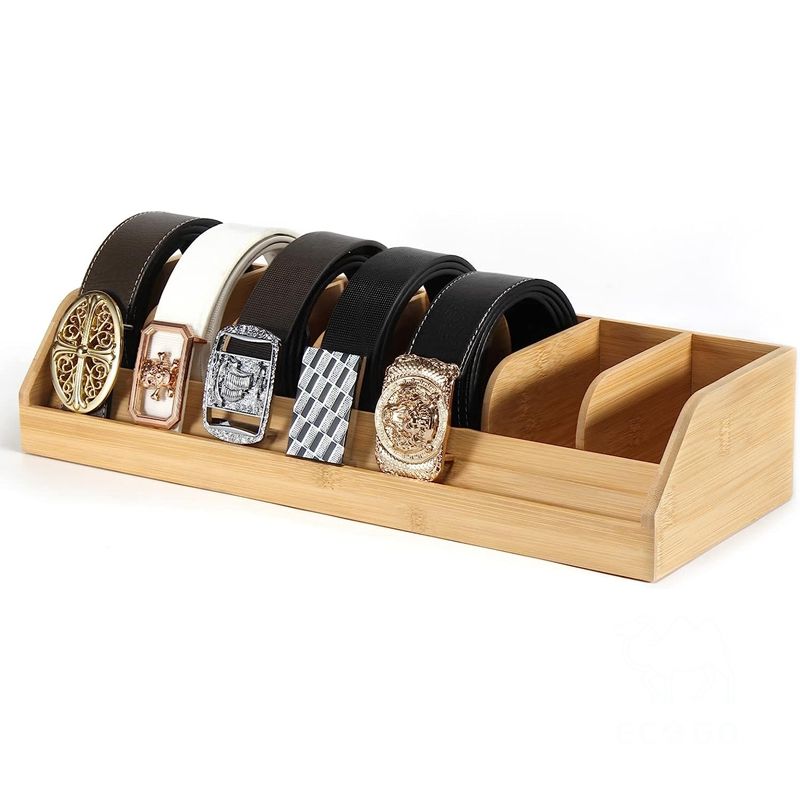 ไม้ไผ่กล่องจัดระเบียบเข็มขัดชั้นแสดงเข็มขัดสำหรับตู้เสื้อผ้าที่เก็บเข็มขัด