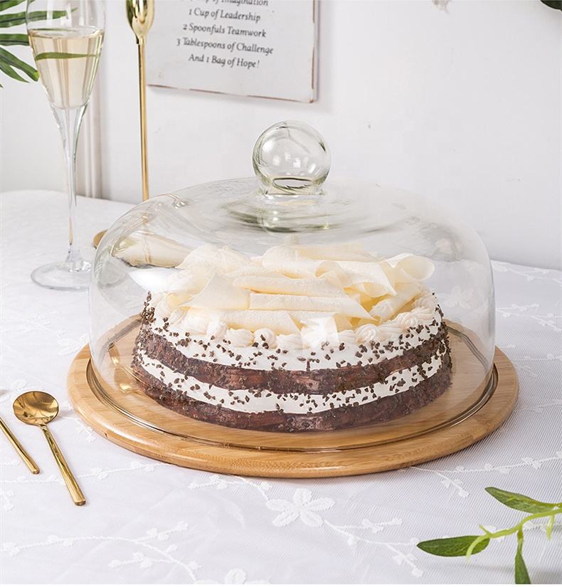 ชื่อสินค้า:แท่นวางเค้กไม้ไผ่พร้อมโดมแก้ว