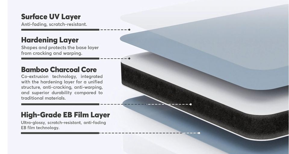 แผ่นผนังไม้ไผ่ถ่าน 5 มม. สีโอ๊คเทาอ่อน 1220x2440 มม. ผลิตในเวียดนาม สำหรับห้องนั่งเล่นและผนังตกแต่งภายใน