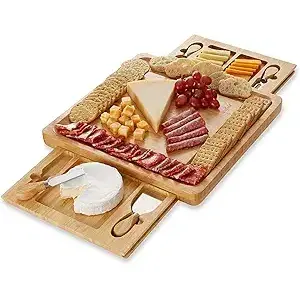ชุดกระดานชีสไม้ไผ่ชุดของขวัญถาดชาร์คิวรี่ถาดเสิร์ฟพร้อมมีดเครื่องมือตัดชีสที่บ้านสำหรับงานแต่งงานวันเกิด