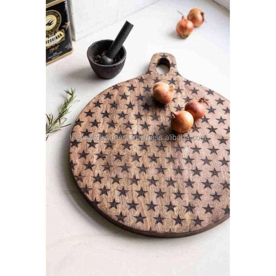 บอร์ดชีสไม้ไผ่พร้อมด้ามจับถาดพิซซ่าเป็นมิตรต่อสิ่งแวดล้อมชื่อที่กำหนดเองพิมพ์เขียงเคลือบสูงและถาดเสิร์ฟโดย TCD