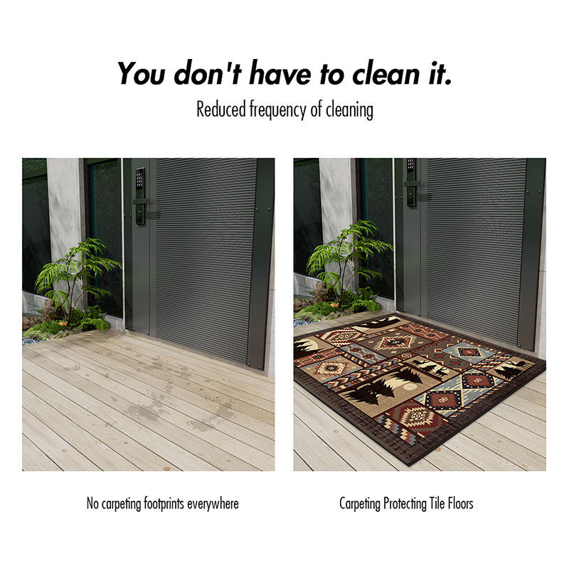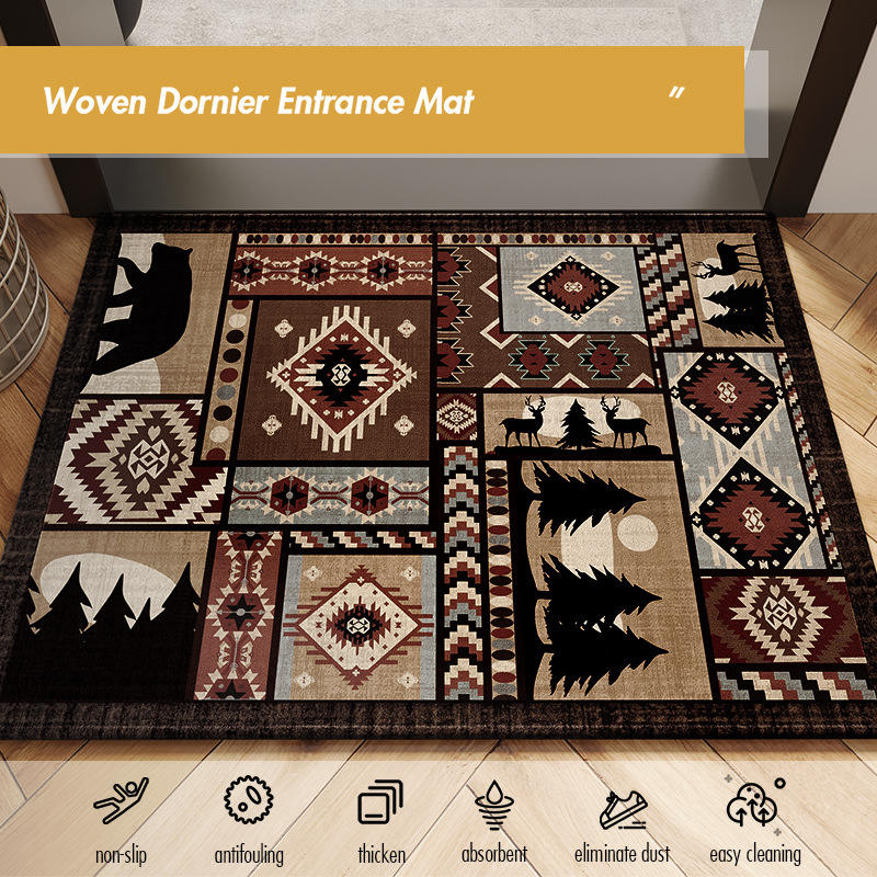 พรมเช็ดเท้ากลางแจ้งผ้ากำมะหยี่ใยไผ่รูปทรงสี่เหลี่ยมผืนผ้าลายชนเผ่าแบบเรียบง่าย ทำจากเส้นใยโพลีเอสเตอร์คุณภาพสูง