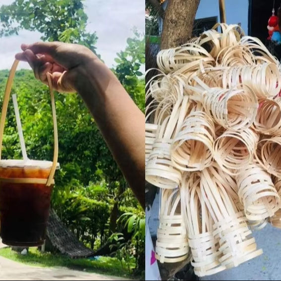 ที่วางแก้วไม้ไผ่พร้อมที่จับสบายน้ำหนักเบาใช้ซ้ำได้เป็นมิตรต่อสิ่งแวดล้อมสำหรับใส่กาแฟชาและเครื่องดื่มเย็น