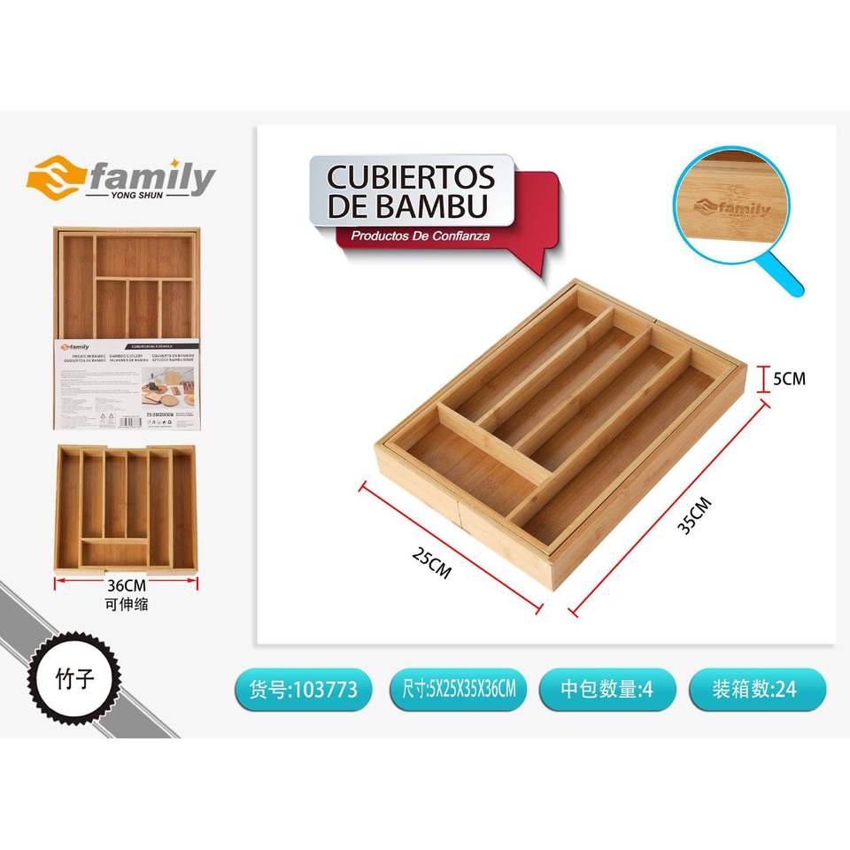 ถาดใส่ช้อนส้อมไม้ไผ่25.5/36.5*35.5*5ซม. กล่องไม้ & กล่องไม้ไผ่