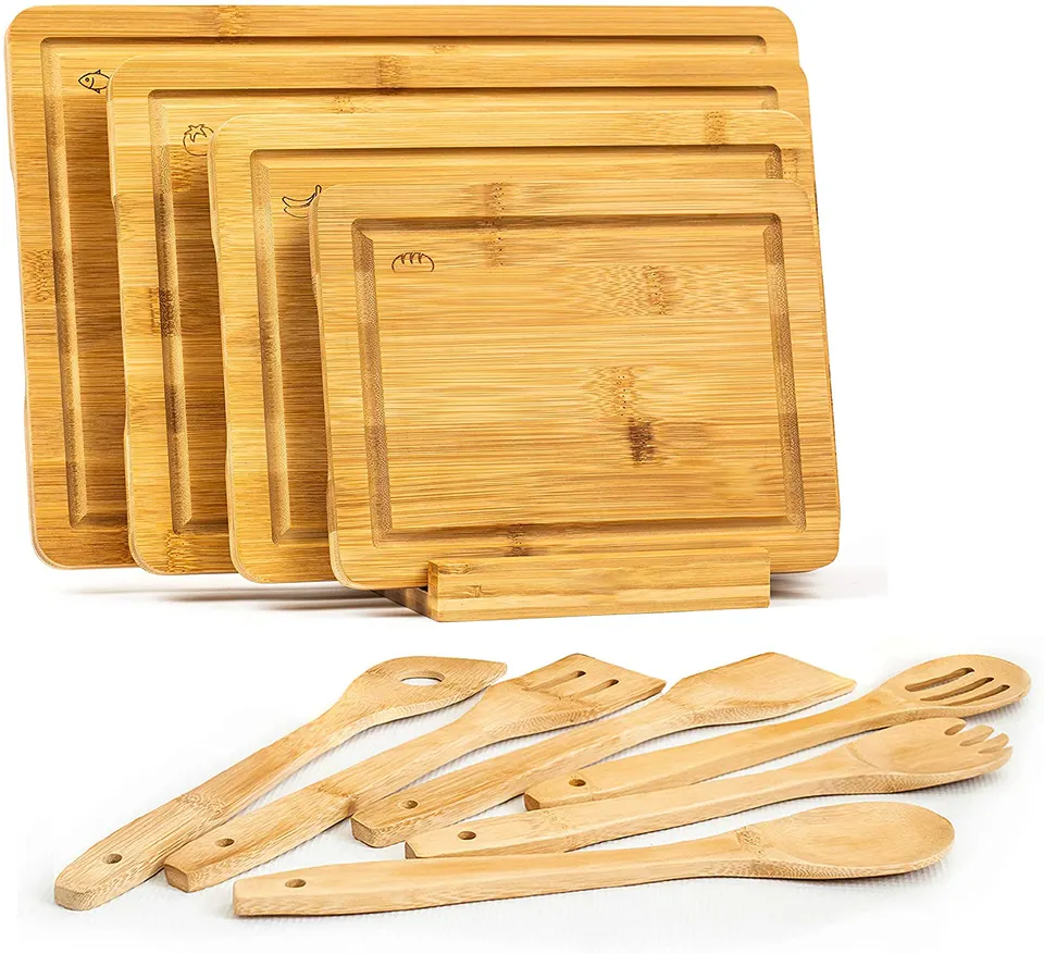 Product name:Hot Sell Bamboo Wood Cutting Board Set with Kitchen Utensil