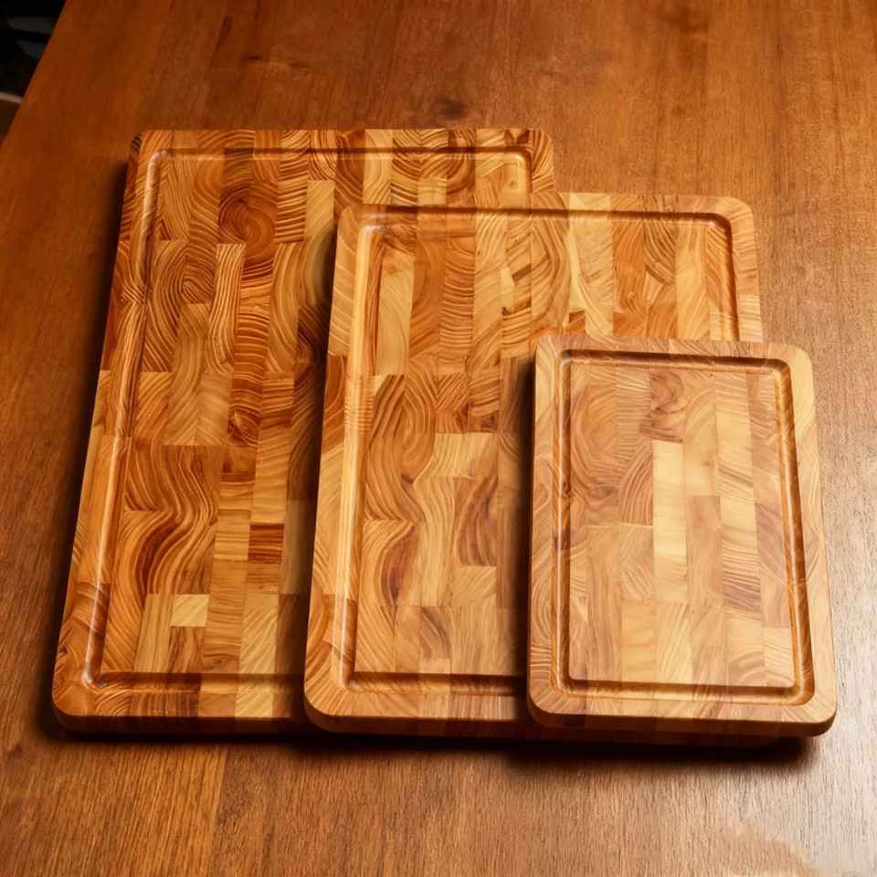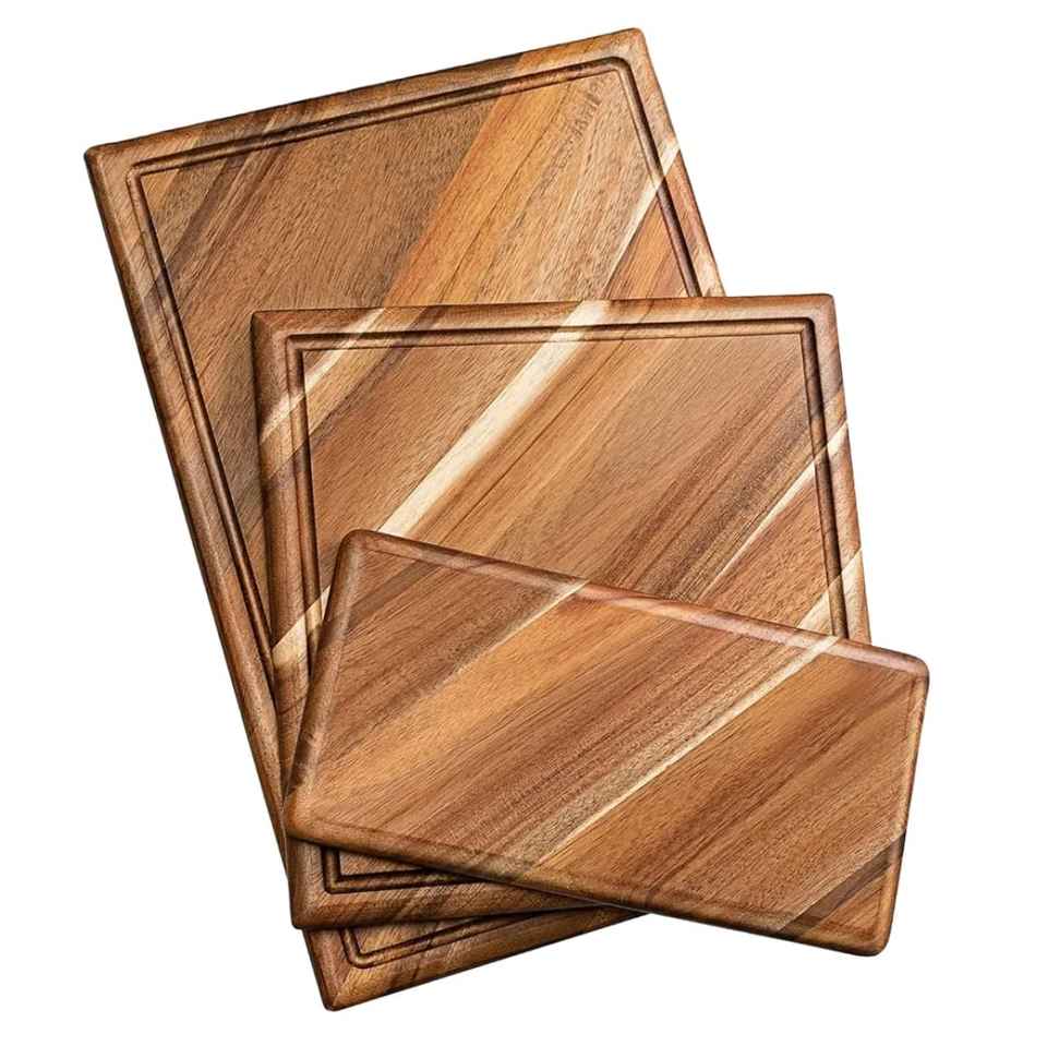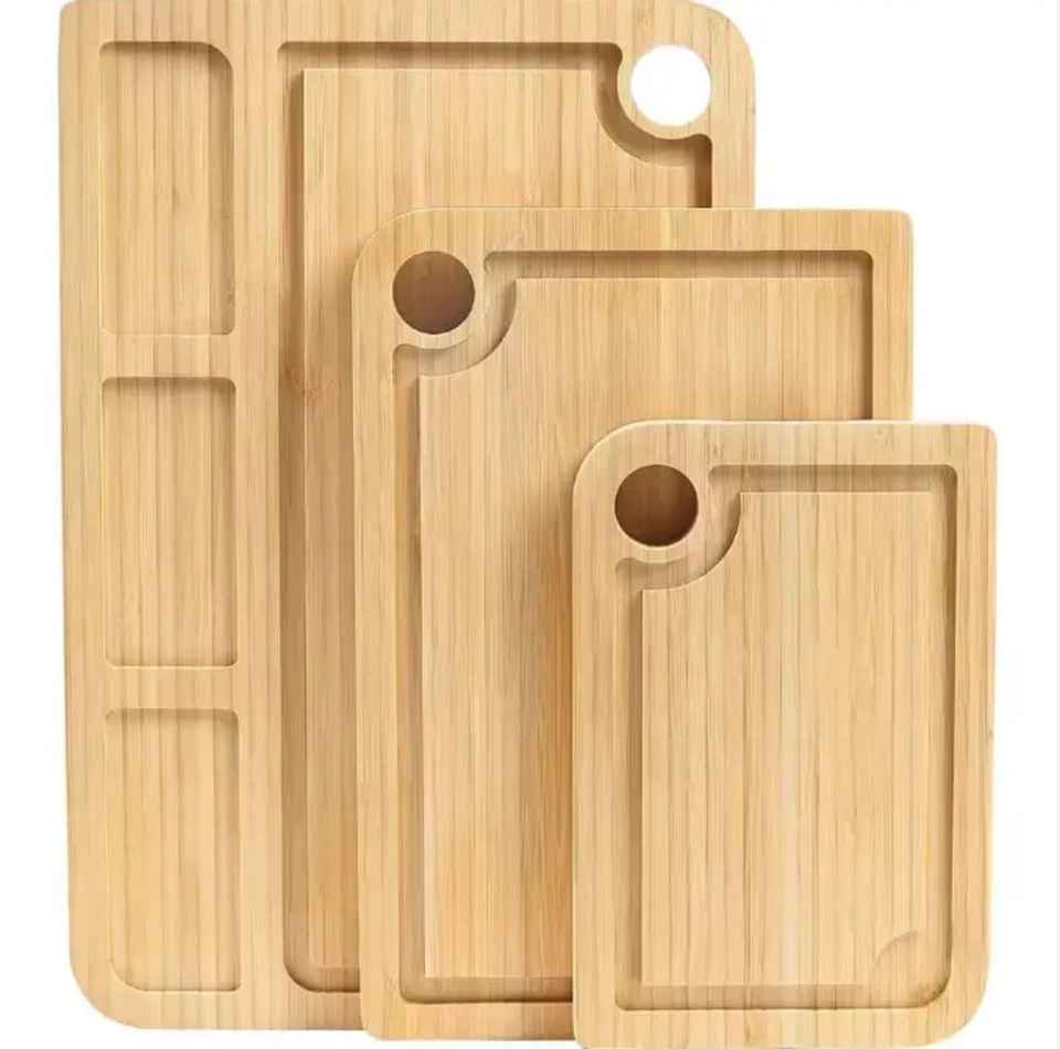 ชุดเขียงไม้ไผ่พร้อมด้ามจับเขียงไม้ห้องครัวพร้อมร่องน้ำผลไม้เป็นมิตรต่อสิ่งแวดล้อมสำหรับเตรียมอาหาร