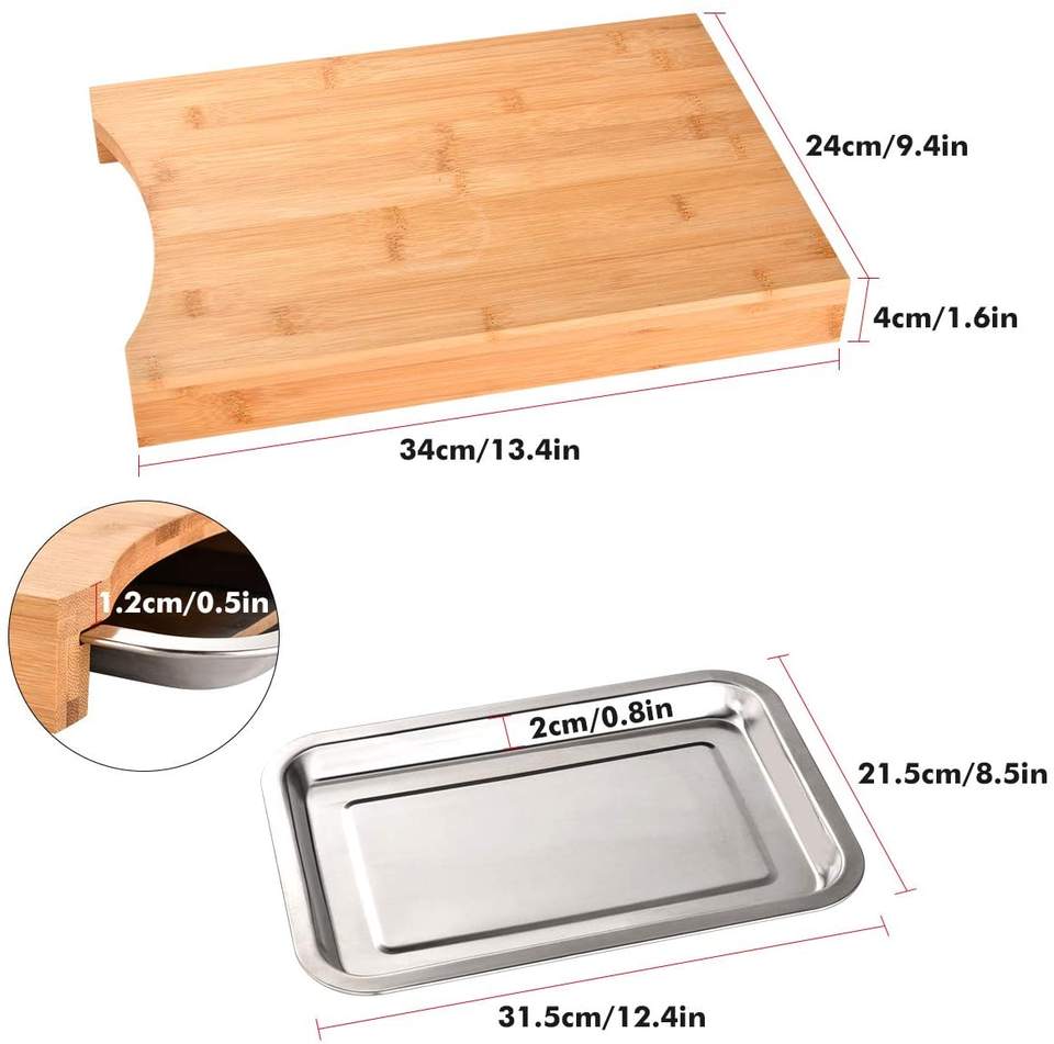 เขียงไม้ไผ่พร้อมภาชนะเลื่อนลิ้นชักถาดสแตนเลส