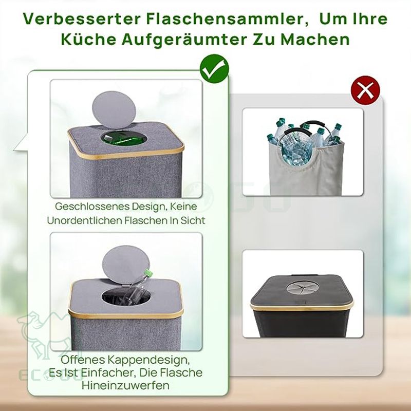 ตะกร้าเก็บขวดไม้ไผ่ถังรีไซเคิลภาชนะเก็บขวดพร้อมถุงใส่สำหรับการออกแบบฝาพับ