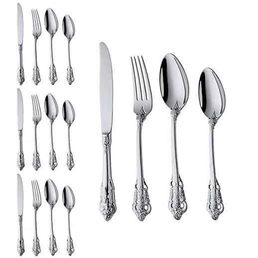 ชุดช้อนส้อมสแตนเลสชุบเงินดีไซน์ลายไม้ไผ่ ชุดช้อนส้อมดีไซน์สร้างสรรค์คุณภาพสูง ชุดช้อนส้อมหรูหราสำหรับคริสต์มาส