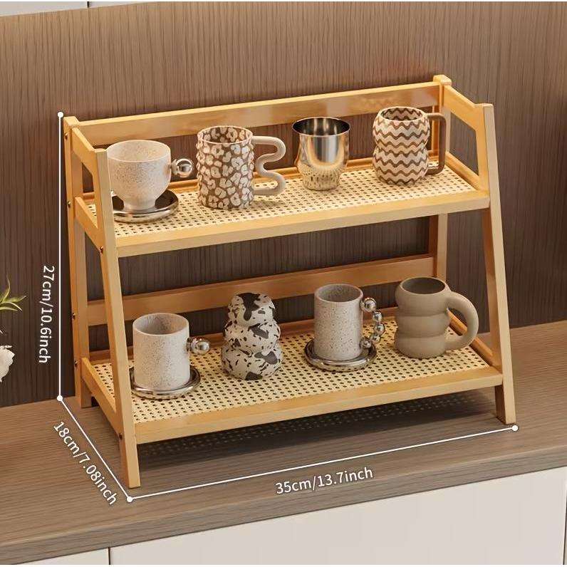 ชั้นวางของไม้ไผ่สองชั้น ดีไซน์โครงเหล็ก ประหยัดพื้นที่ รูปทรงบันได ลายไม้ธรรมชาติ ประกอบง่าย ผลิตในจีน