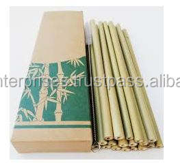 หลอดดูดน้ำไม้ไผ่พร้อมที่เก็บในตัว ชุดหลอดแบบใช้ซ้ำได้ ย่อยสลายได้ทางชีวภาพ สำหรับร้านกาแฟและการตกแต่งร้านอาหาร
