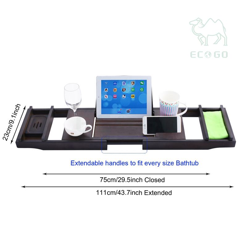 ถาดวางของในห้องน้ำแบบปรับได้ ทันสมัย ทนทาน เป็นมิตรกับสิ่งแวดล้อม ทำจากไม้ไผ่ สำหรับอ่างอาบน้ำสปาสุดหรู พร้อมชั้นวางสบู่ สีน้ำตาล