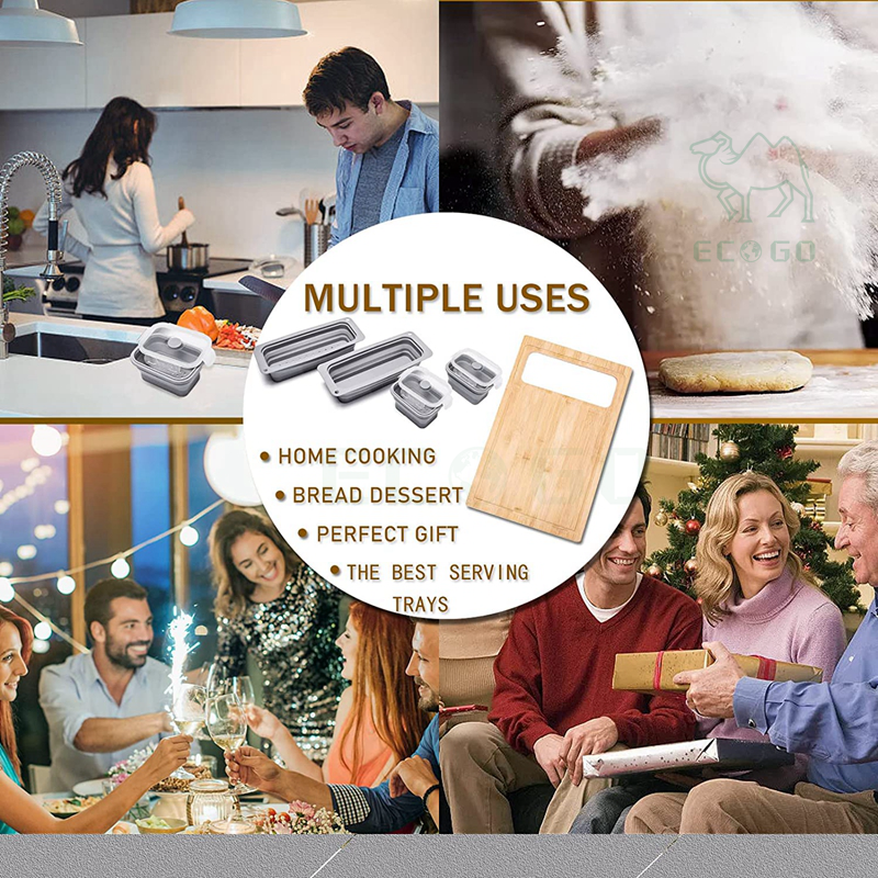 ชื่อผลิตภัณฑ์:เขียงไม้ไผ่ที่มีร่องน้ำผลไม้พร้อมภาชนะสีเทา