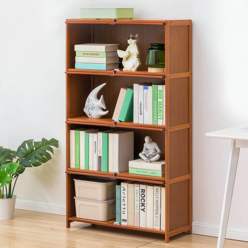 ตู้หนังสือไม้ไผ่อิสระพร้อมประตูอะคริลิคแบบฝาพับที่เก็บของสำหรับห้องทำงานและห้องนอน