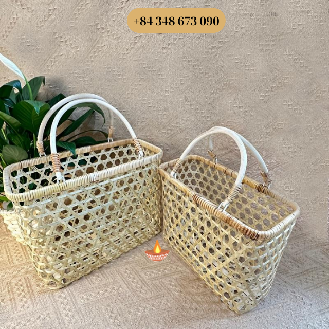 กล่องตะกร้าของขวัญทำจากไม้ไผ่สำหรับบรรจุอาหารตะกร้าใส่ไวน์และของตกแต่งงานปาร์ตี้