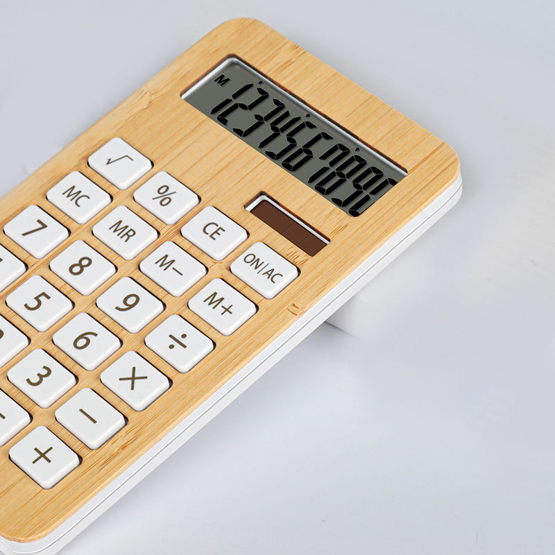 เครื่องคิดเลขมือถือทำจากไม้ไผ่12หลักหน้าจอขนาดใหญ่และเครื่องคิดเลขไม้นักเรียนการเงินสำหรับการเรียนรู้ในออฟฟิศ