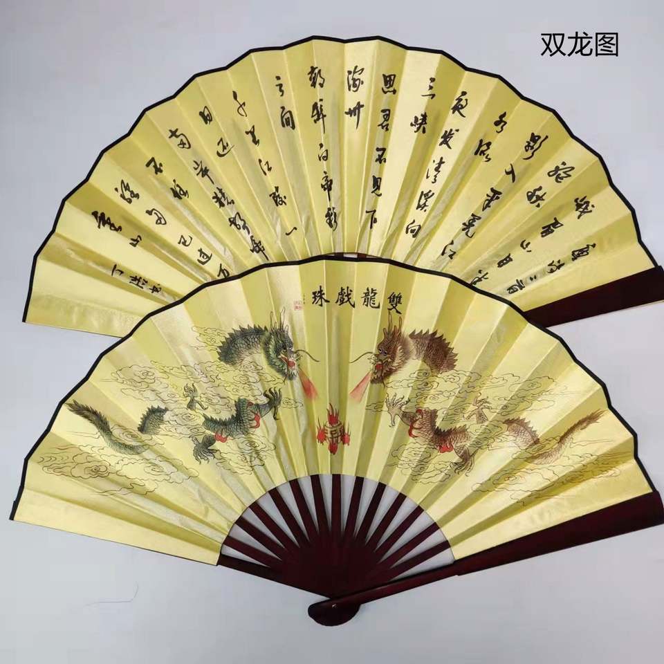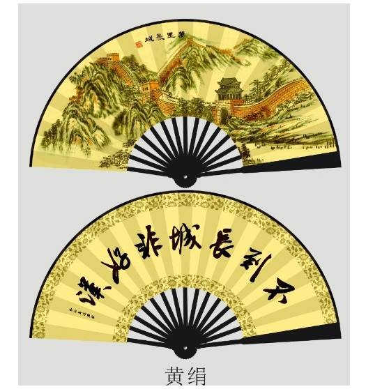 พัดพับด้ามไม้ไผ่ ผ้าไหม ลายภาพวาดจีนโบราณ สลักเลเซอร์ สไตล์จีนโบราณ กันน้ำ ทนทาน สำหรับงานปาร์ตี้