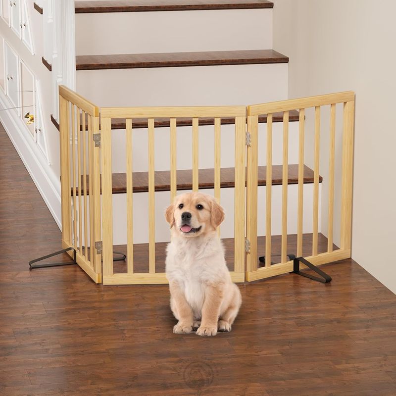 รั้วกั้นสัตว์เลี้ยงแบบพับได้ ทำจากไม้ไผ่ อบด้วยความร้อน พร้อมขาตั้ง 3 แผง เป็นมิตรกับสิ่งแวดล้อม สำหรับใช้ภายในอาคาร