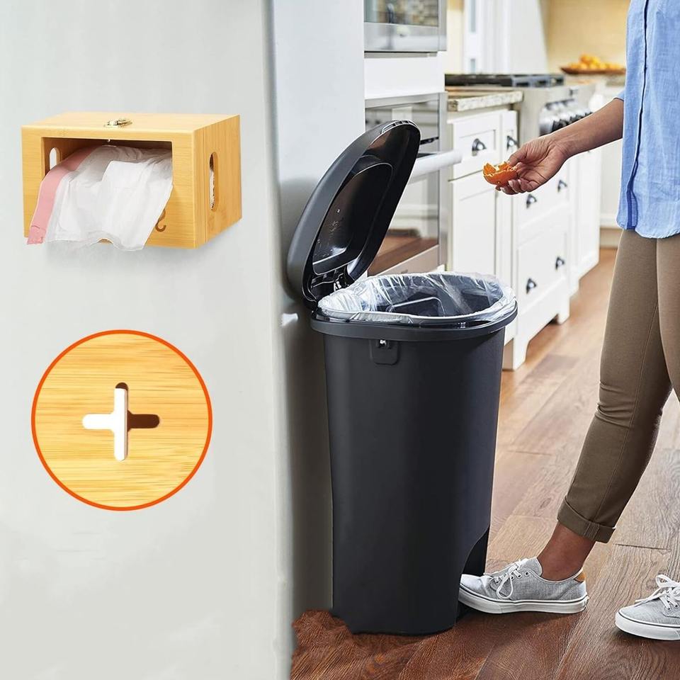 ชื่อ:ที่วางถุงขยะในครัวทำจากไม้ไผ่ขนาด: L10 x W7,3 x H7,3นิ้ว