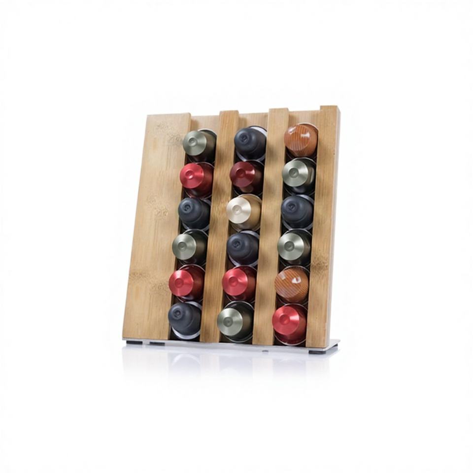 Eco-Friendly Reusable Durable Square Bamboo Coffee Pod Organizer Holder Storage Rack with Modern Design for Home & Office