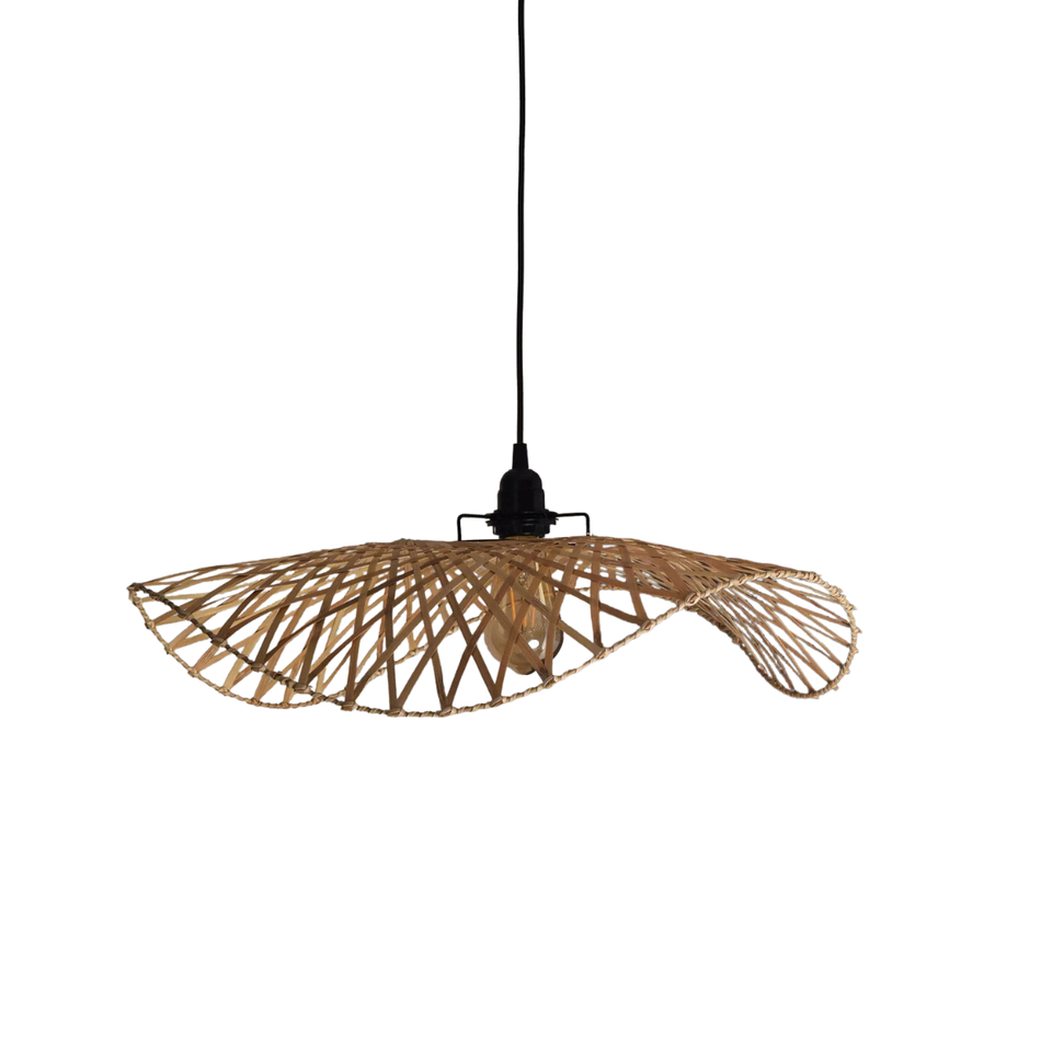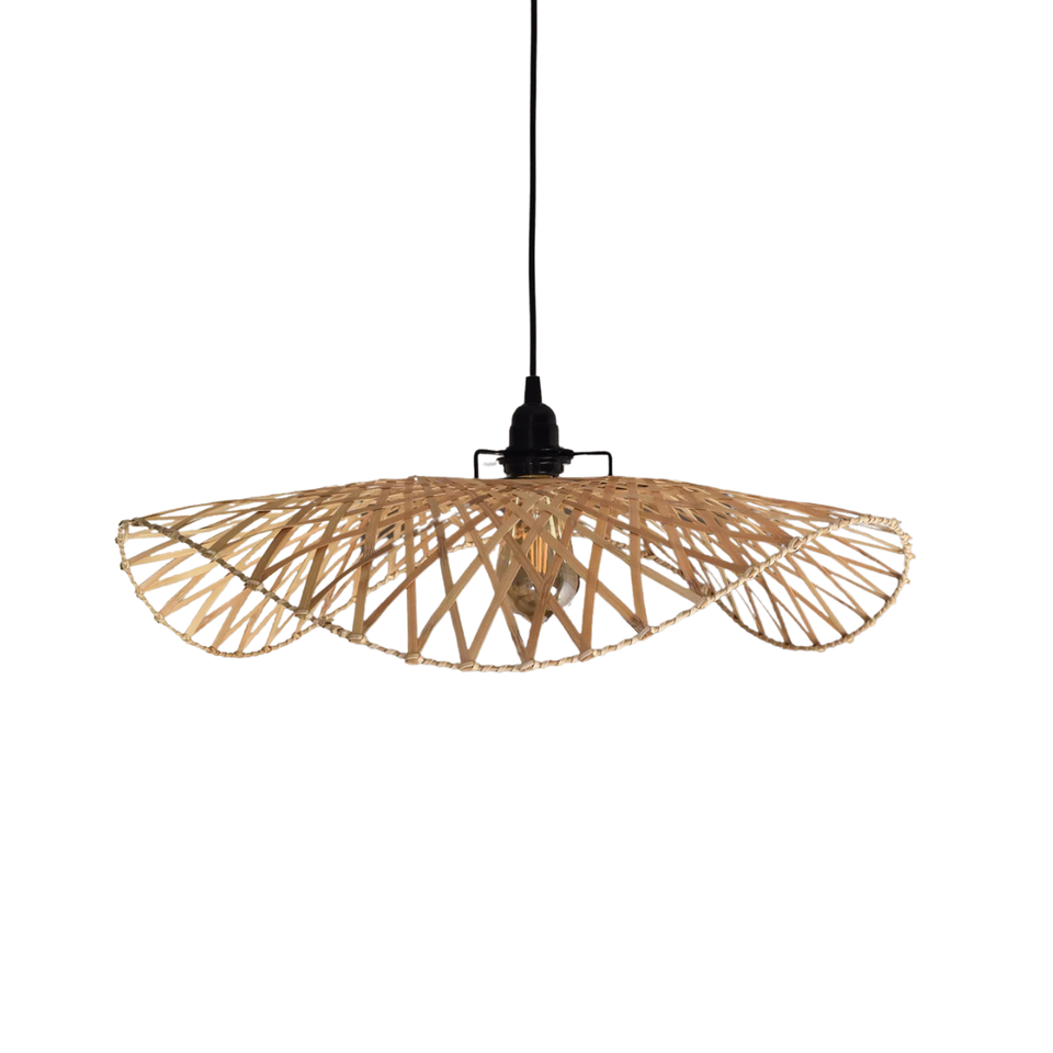 โคมไฟไม้ไผ่ทรงหยักโคมไฟทอมือโคมไฟทำมือโคมไฟจี้ไม้ไผ่ธรรมชาติโคมไฟแขวนเพดานตกแต่ง