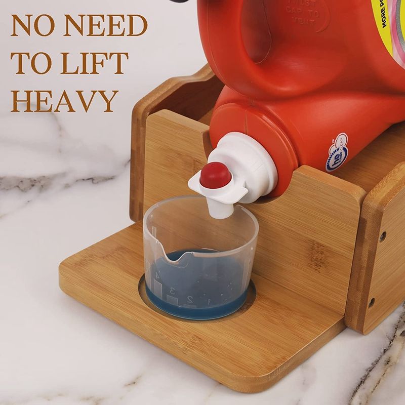 ที่ใส่น้ำยาซักผ้าไม้ไผ่พร้อมถาดถ้วยที่ใส่สบู่ซักผ้าแบบมีมุม