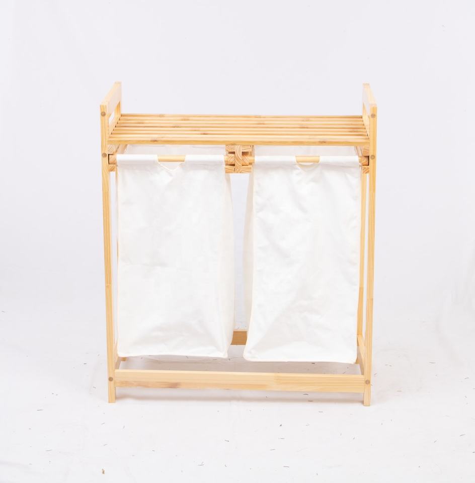 ตะกร้าซักผ้า2ส่วน,ตะกร้าซักผ้าไม้ไผ่พร้อมช่องใส่ผ้าสองช่องแบบถอดได้