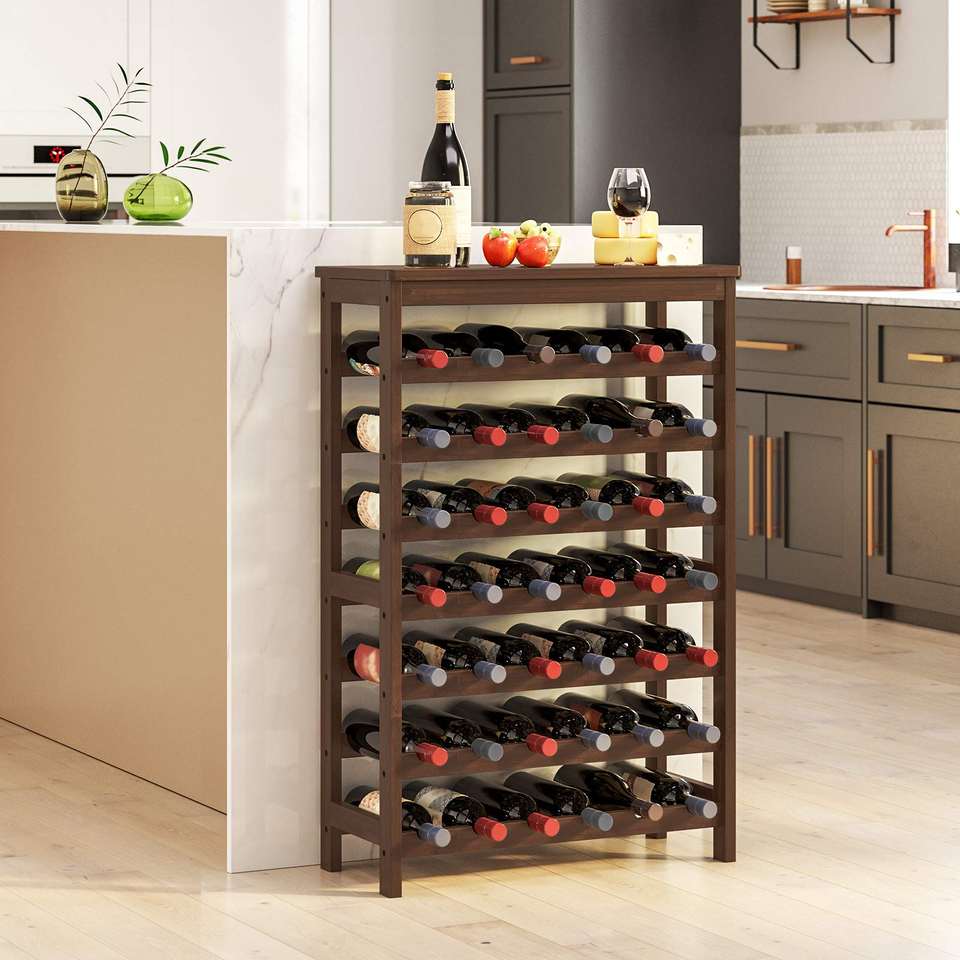 ชั้นวางไวน์ไม้ไผ่สุดหรู 7 ชั้น ชั้นวางไวน์แบบตั้งพื้น จุได้ 42 ขวด ชั้นวางจัดเก็บไวน์ ชั้นวางขวดไวน์ระดับพรีเมียม