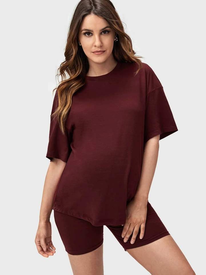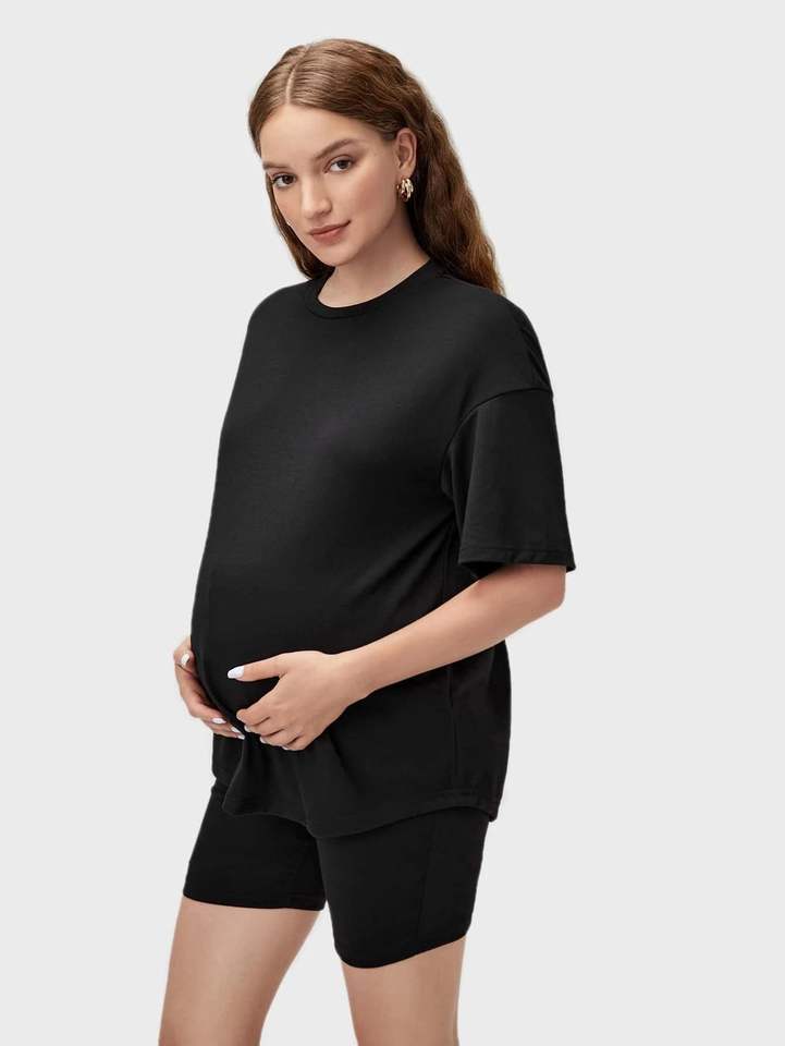 ชุดคลุมท้องผ้าไผ่แบบเรียบง่าย แขนเสื้อแบบดรอปโชว์เดอร์ กางเกงขาสั้น ชุดนอนคนท้องผ้าไผ่ ชุดนอนคนท้องขาสั้น