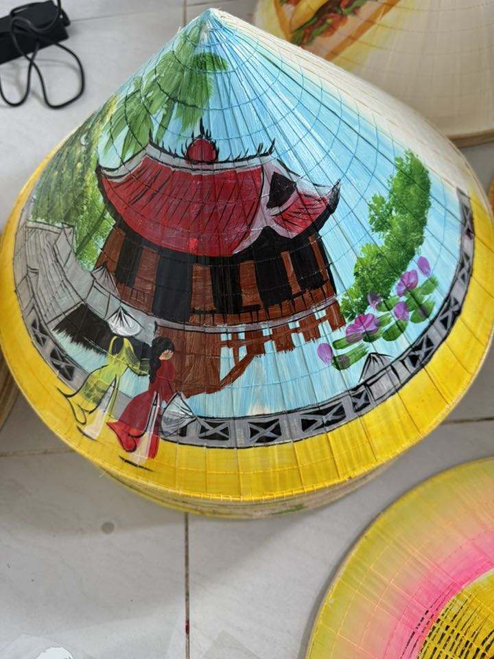 หมวกทรงกรวยทำจากใบปาล์มไม้ไผ่ ผลิตจากวัสดุธรรมชาติ สำหรับการสวมใส่แบบดั้งเดิม ตกแต่งภายใน และการค้าระหว่างประเทศ