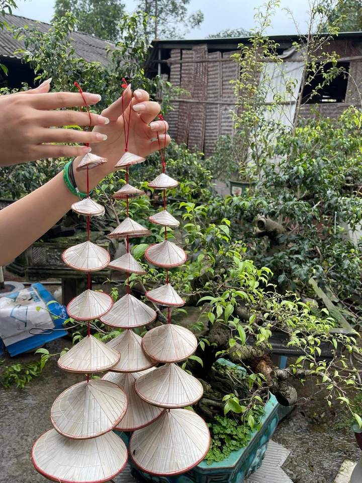 หมวกทรงกรวยทำจากใบปาล์มไม้ไผ่ ดีไซน์ระบายอากาศได้ดี ผลิตจากวัสดุธรรมชาติ เหมาะสำหรับสวมใส่ในงานเกษตรกรรมและตกแต่งภายใน