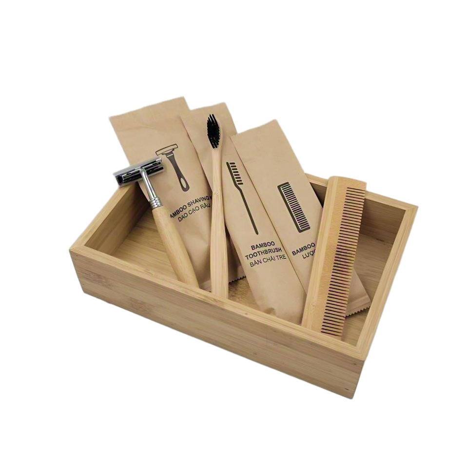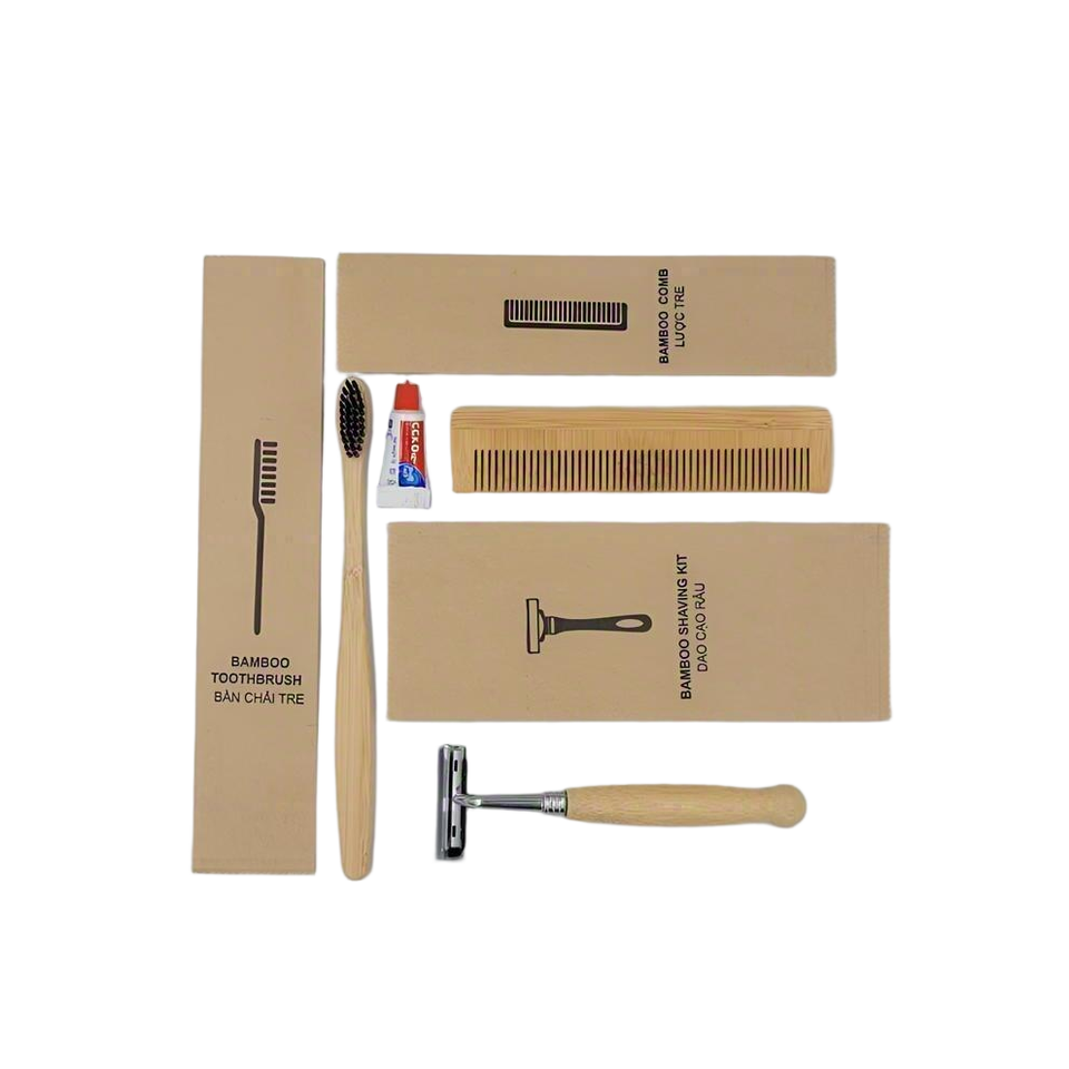 ชุดดูแลส่วนบุคคลไม้ไผ่ชุดดูแลอย่างยั่งยืนพร้อมแปรงสีฟันไม้ไผ่มีดโกนหวีและอุปกรณ์อาบน้ำ