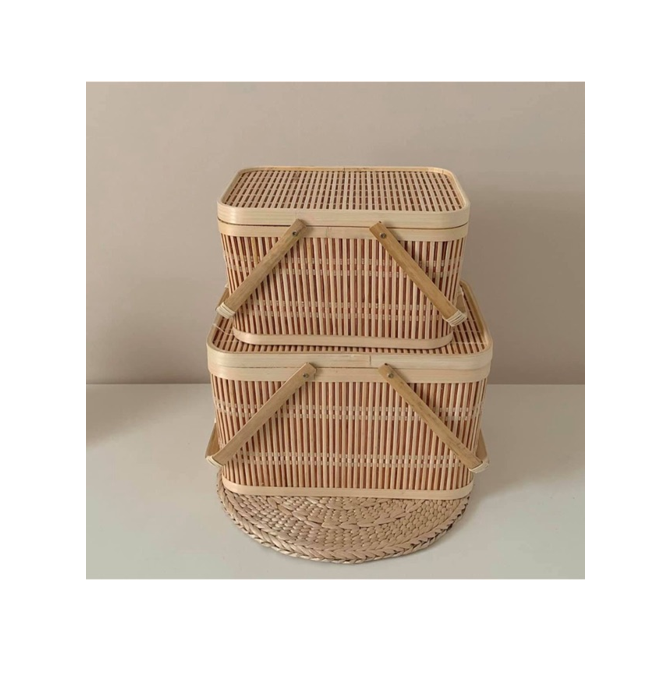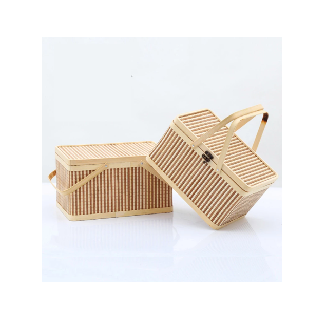 ตะกร้าปิคนิคไม้ไผ่มีฝาปิด