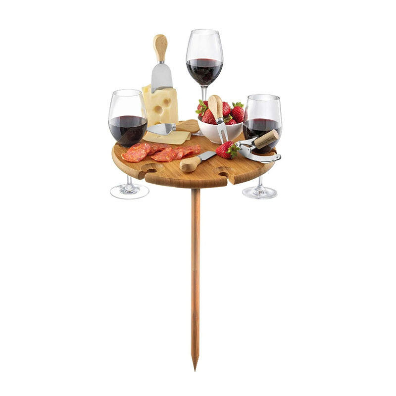 Description:This lightweight foldable bamboo table holds wine