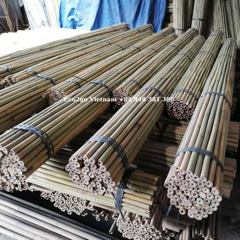เสาไม้ไผ่ธรรมชาติ 100% สำหรับงานก่อสร้าง ขนาดเส้นผ่านศูนย์กลาง 2-20 เมตร ความหนา 3-10 ซม. ขายส่งจากโรงงาน Eco2go เวียดนาม