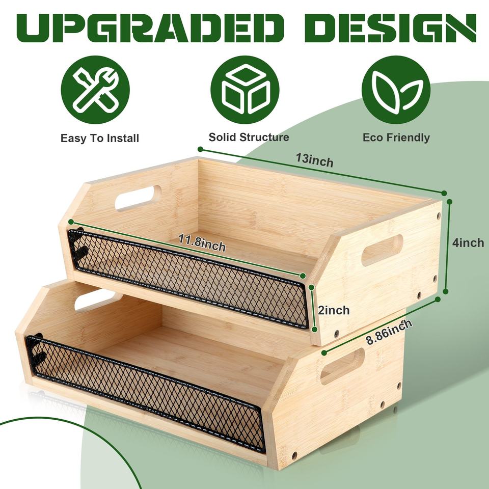 ตะกร้าเก็บมันฝรั่งและหัวหอมไม้ไผ่ ตะกร้าเก็บของแบบซ้อนได้พร้อมหูหิ้ว ตะกร้าใส่หัวหอมสำหรับห้องเก็บของ ตะกร้าไม้ไผ่สำหรับจัดเก็บ