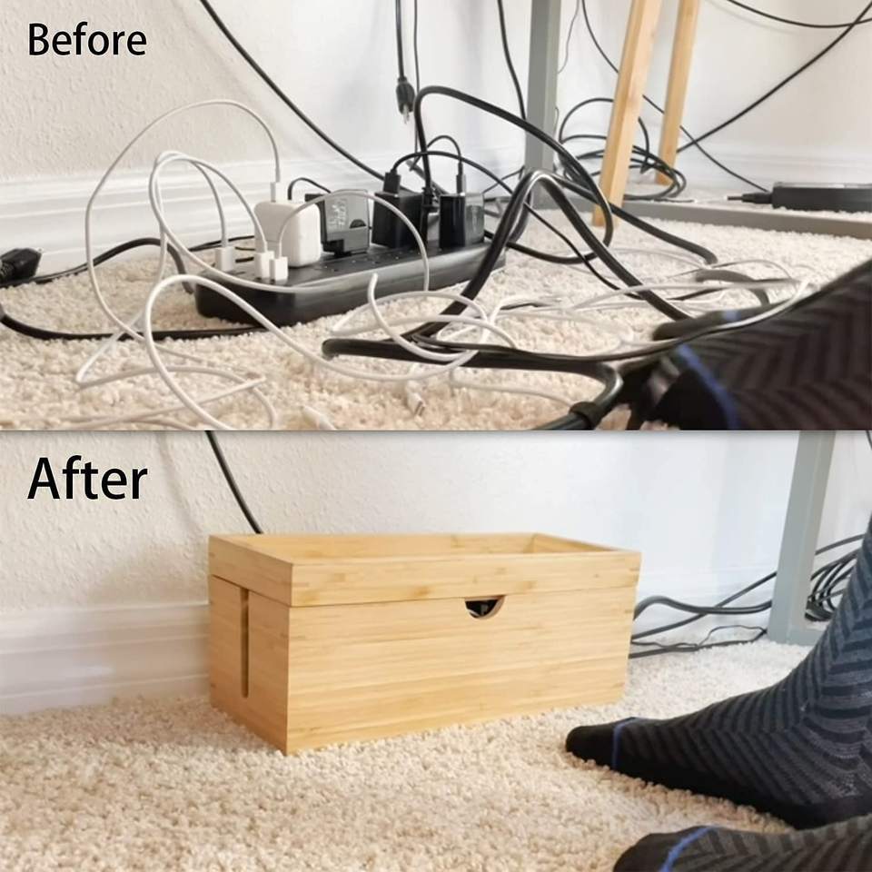 ออแกไนเซอร์สายไฟไม้ไผ่ซ่อนแถบไฟและสายไฟหลวมจากทีวีโต๊ะคอมพิวเตอร์กล่องการจัดการสายไฟกระชากไม้