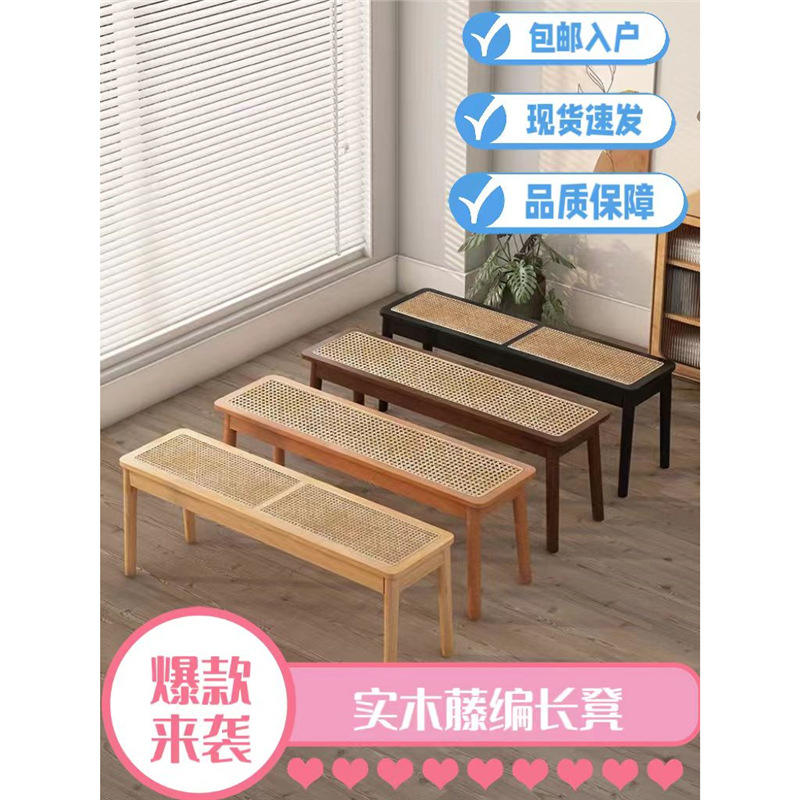 ม้านั่งยาวไม้ไผ่หวายสไตล์ญี่ปุ่น โครงไม้เนื้อแข็ง ทนทาน เฟอร์นิเจอร์ห้องนั่งเล่นสำหรับเด็กและผู้ใหญ่ ได้รับสิทธิบัตร ปรับแต่งได้